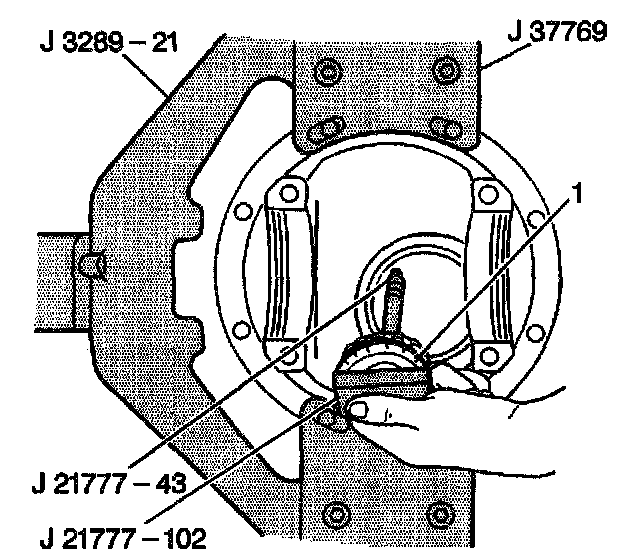 5. Rotate the J 21777-102 25 revolutions with the differential dummy attachment to ensure the pinion bearings are fully seated.