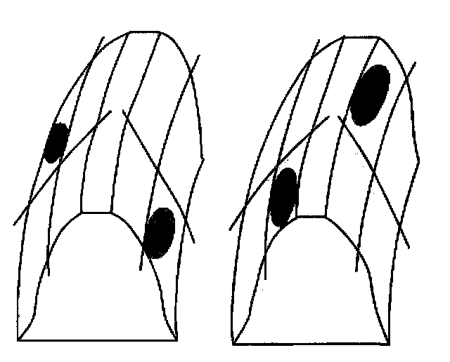 ^ A coast pattern from heel (2) to toe (1) has a normal drive contact.