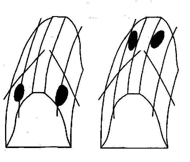 ^ A typical drive pattern from heel (2) to toe (1) has a normal drive contact.
