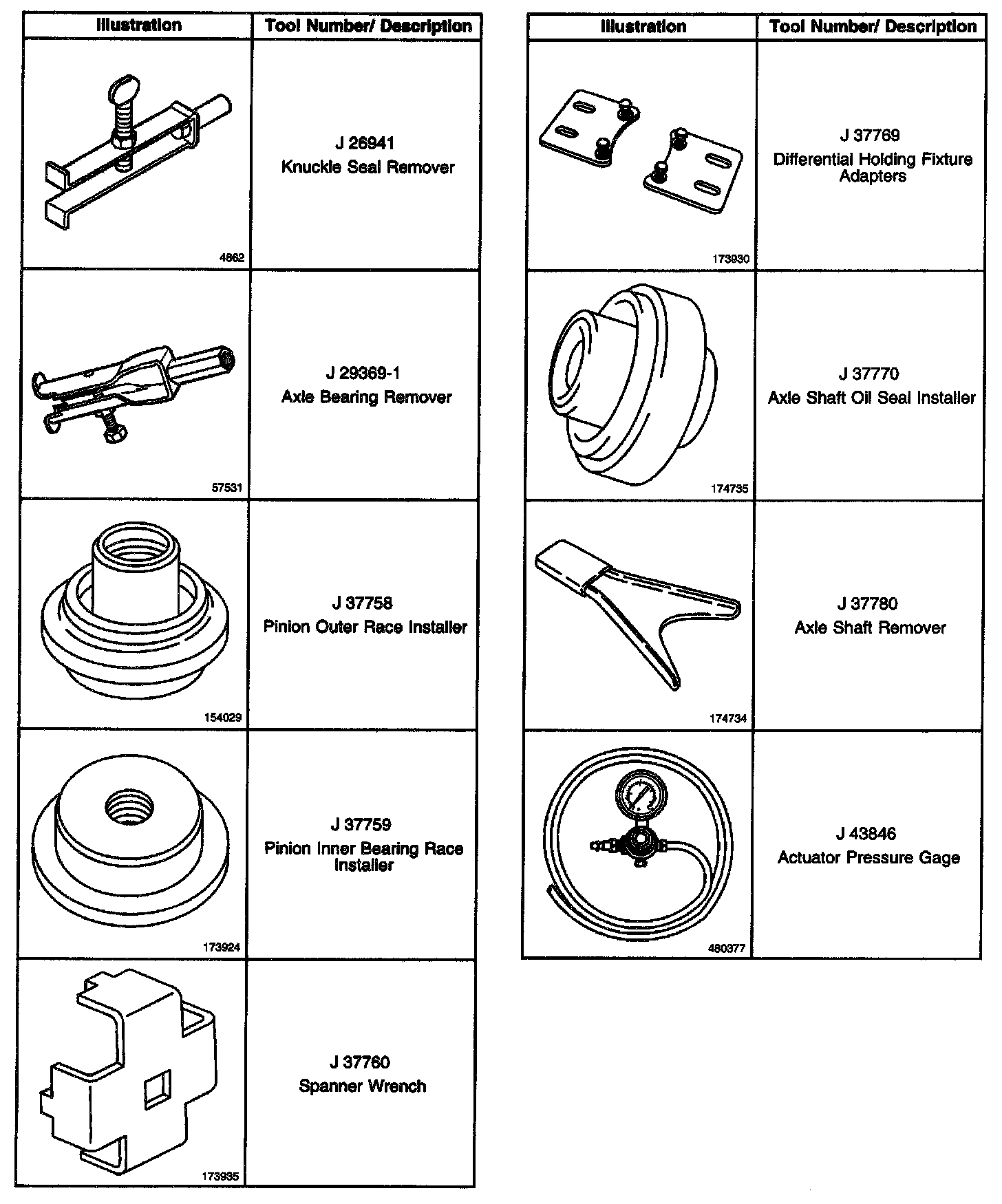 Front Drive Axle Special Tools and Equipment