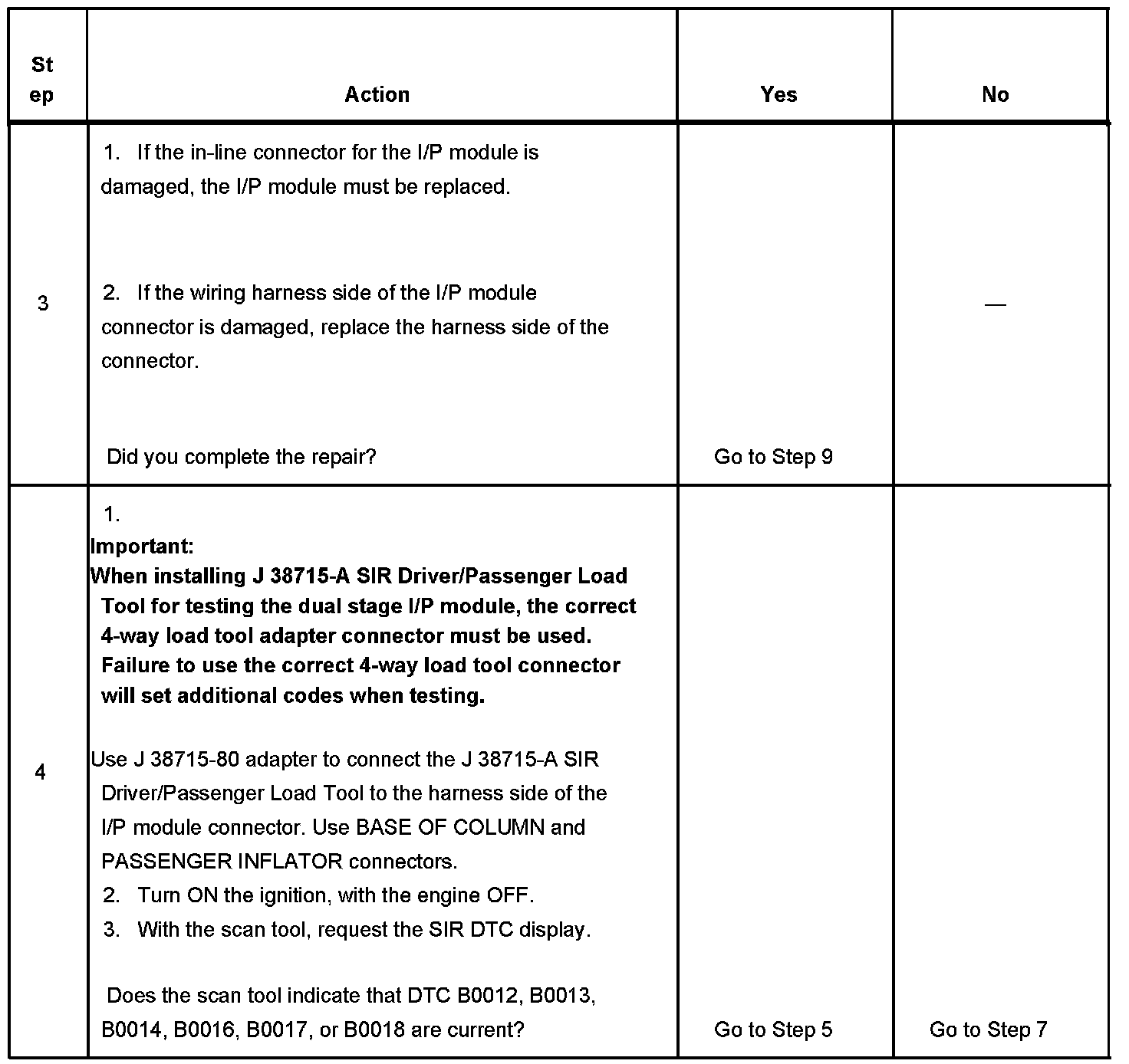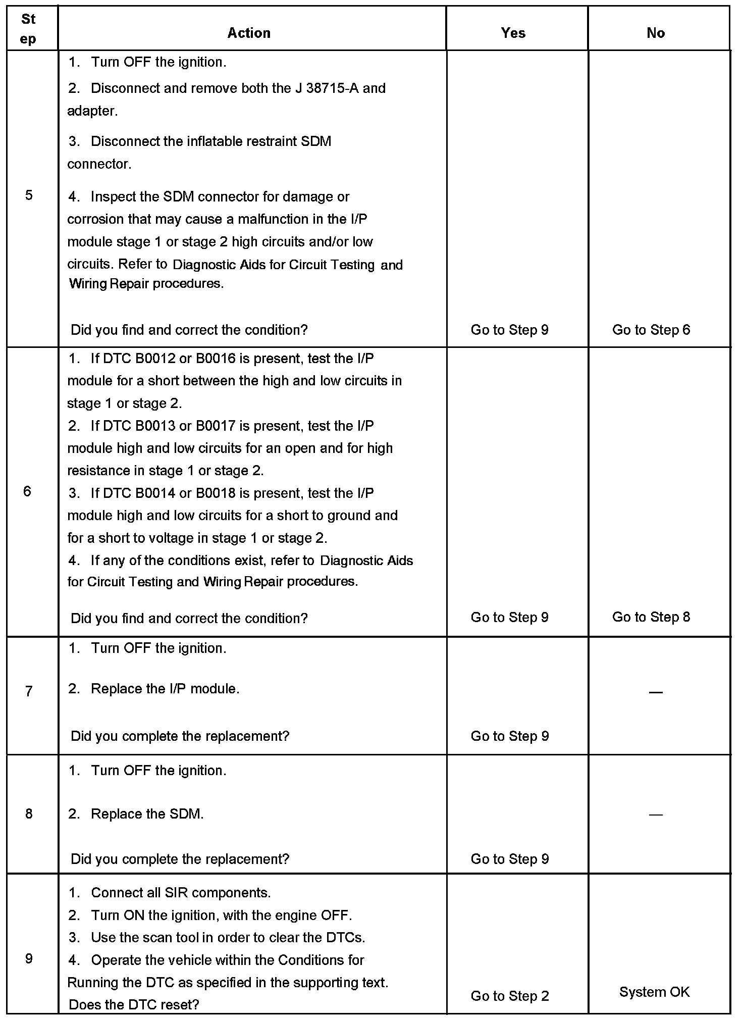 - DTC B0012 (stage 2) or B0016 (stage 1) will set when the I/P module deployment loop resistance is less than 1.3 ohms for 500 milliseconds.
