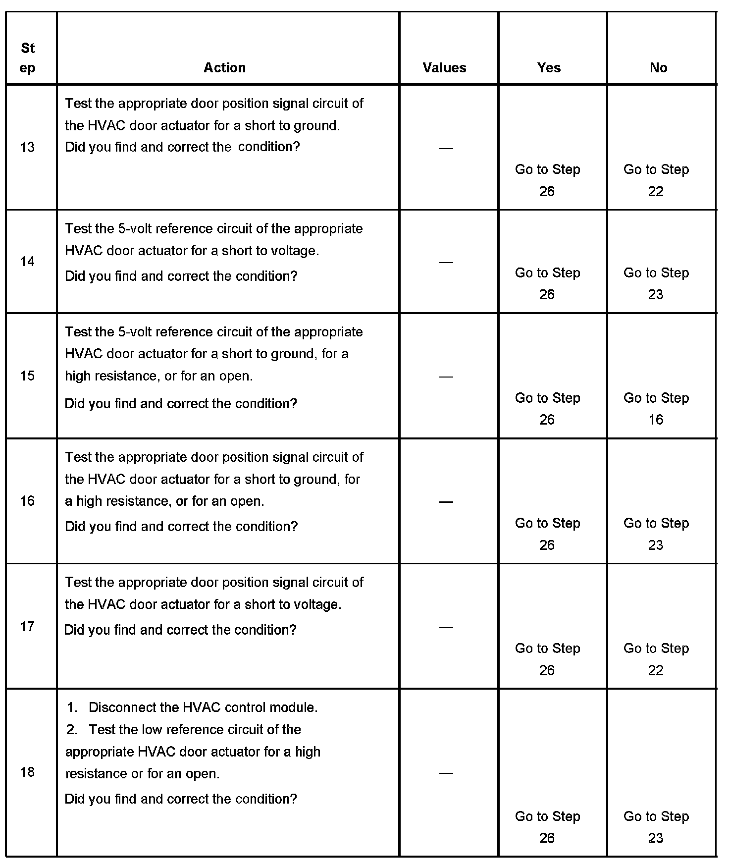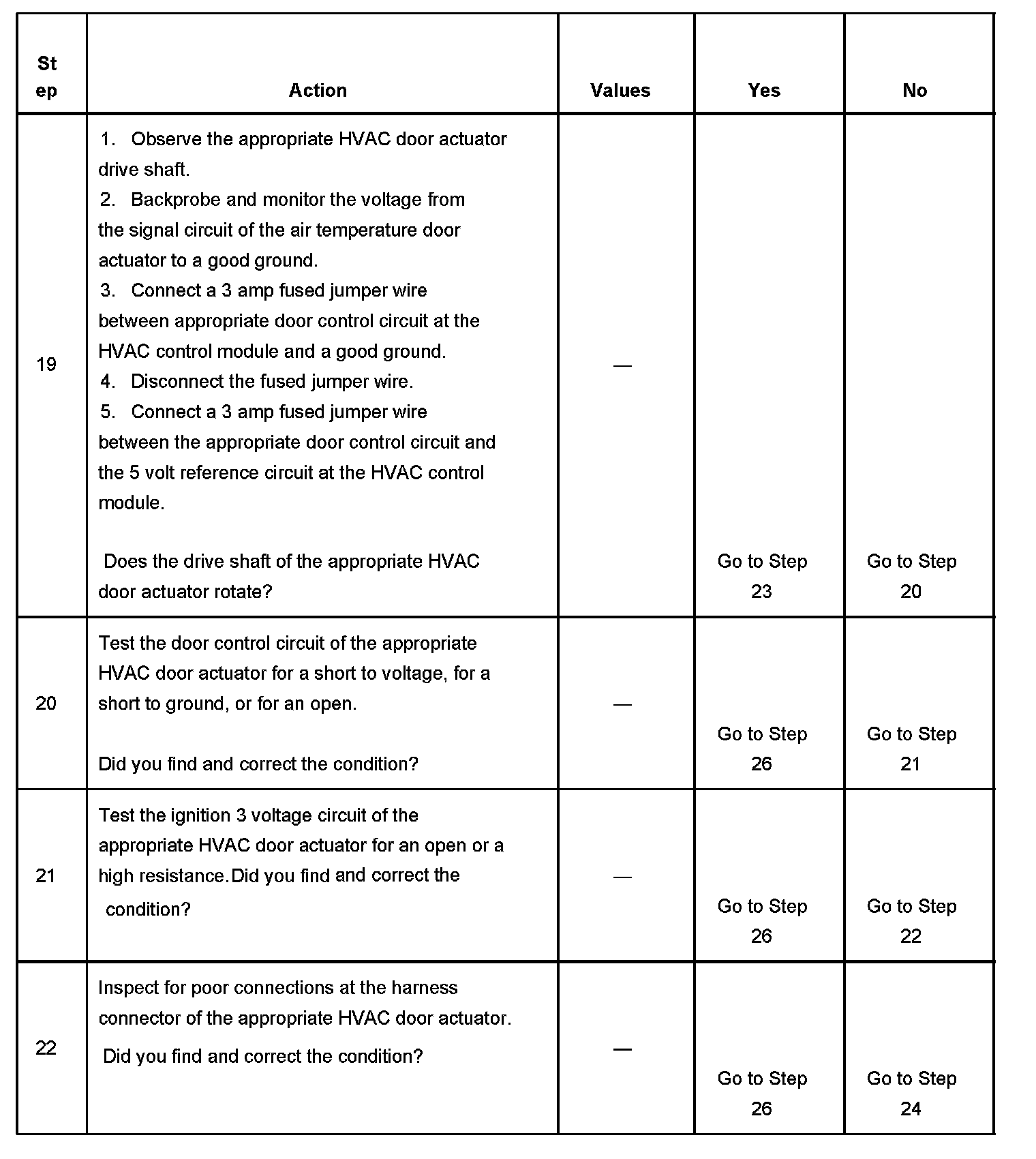 10. This step tests for an open on the low reference circuit that is common to all of the actuators. Choose the easiest HVAC door actuator that set a DTC to start the diagnosis.