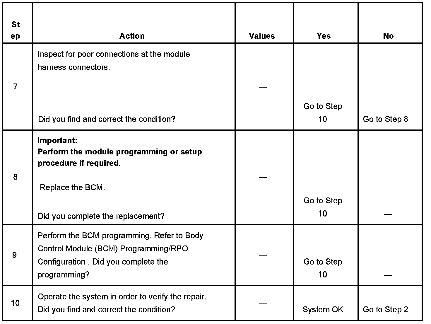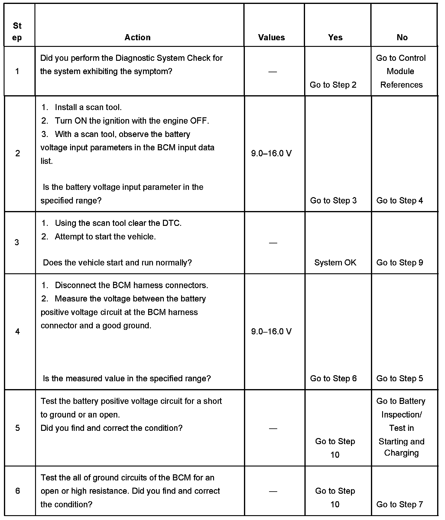 The BCM senses a battery voltage below or above the specified range of 9-16 volts.