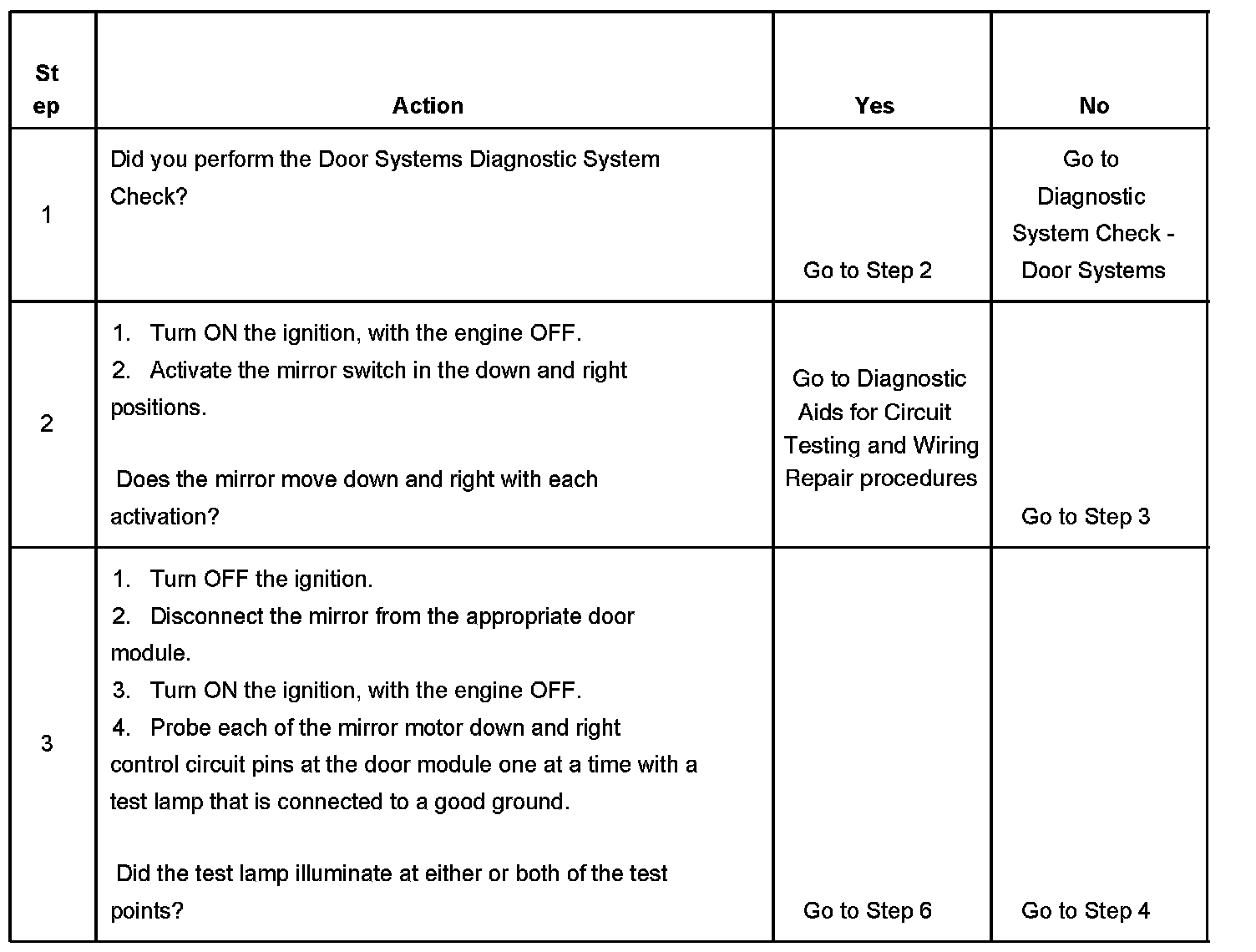 - If the outside rearview mirror motor right control circuit is shorted to ground and the mirror is commanded right.