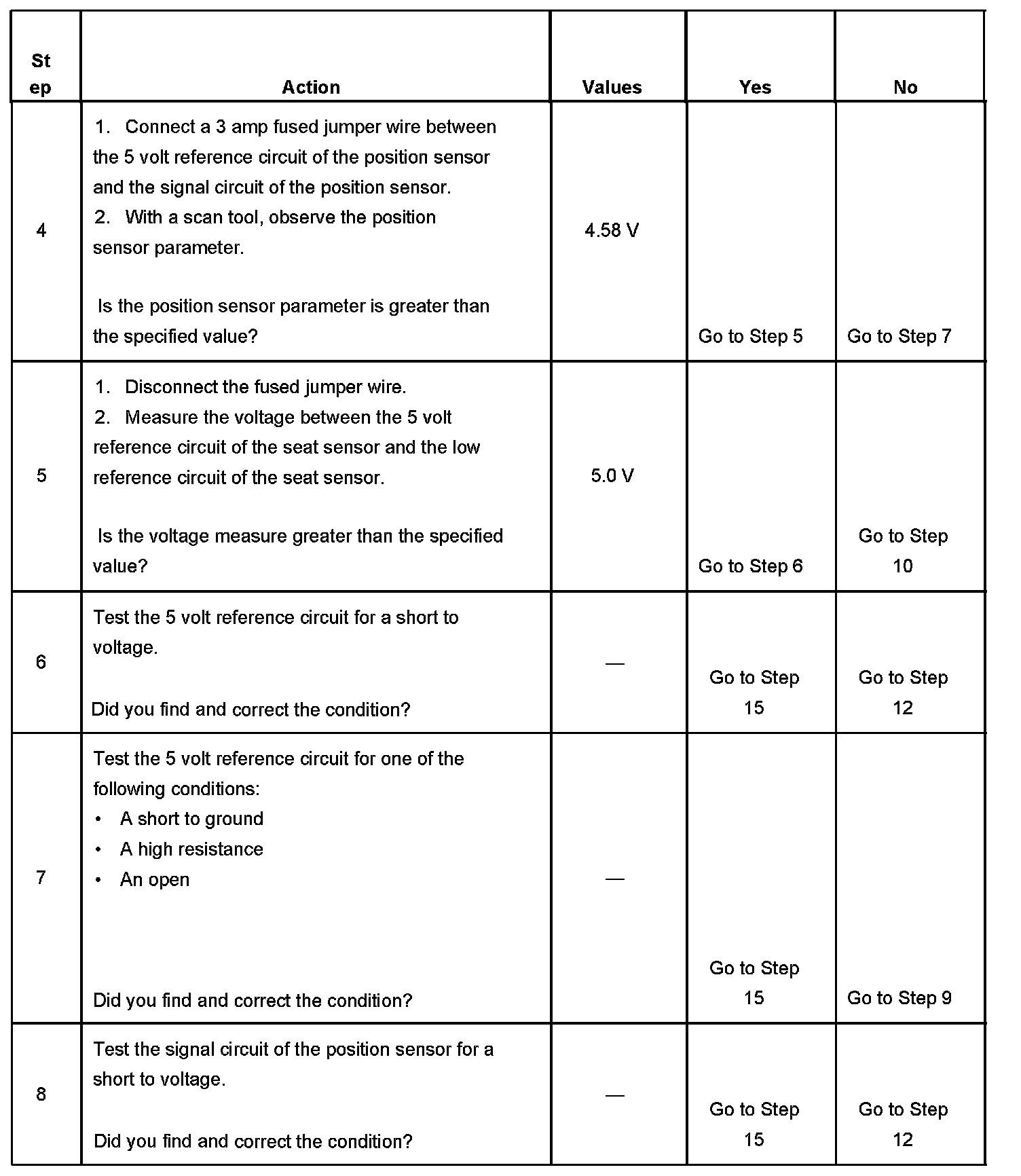 The position sensor signal circuit voltage level to the driver seat module is not within the 0.39-4.58 volt range.