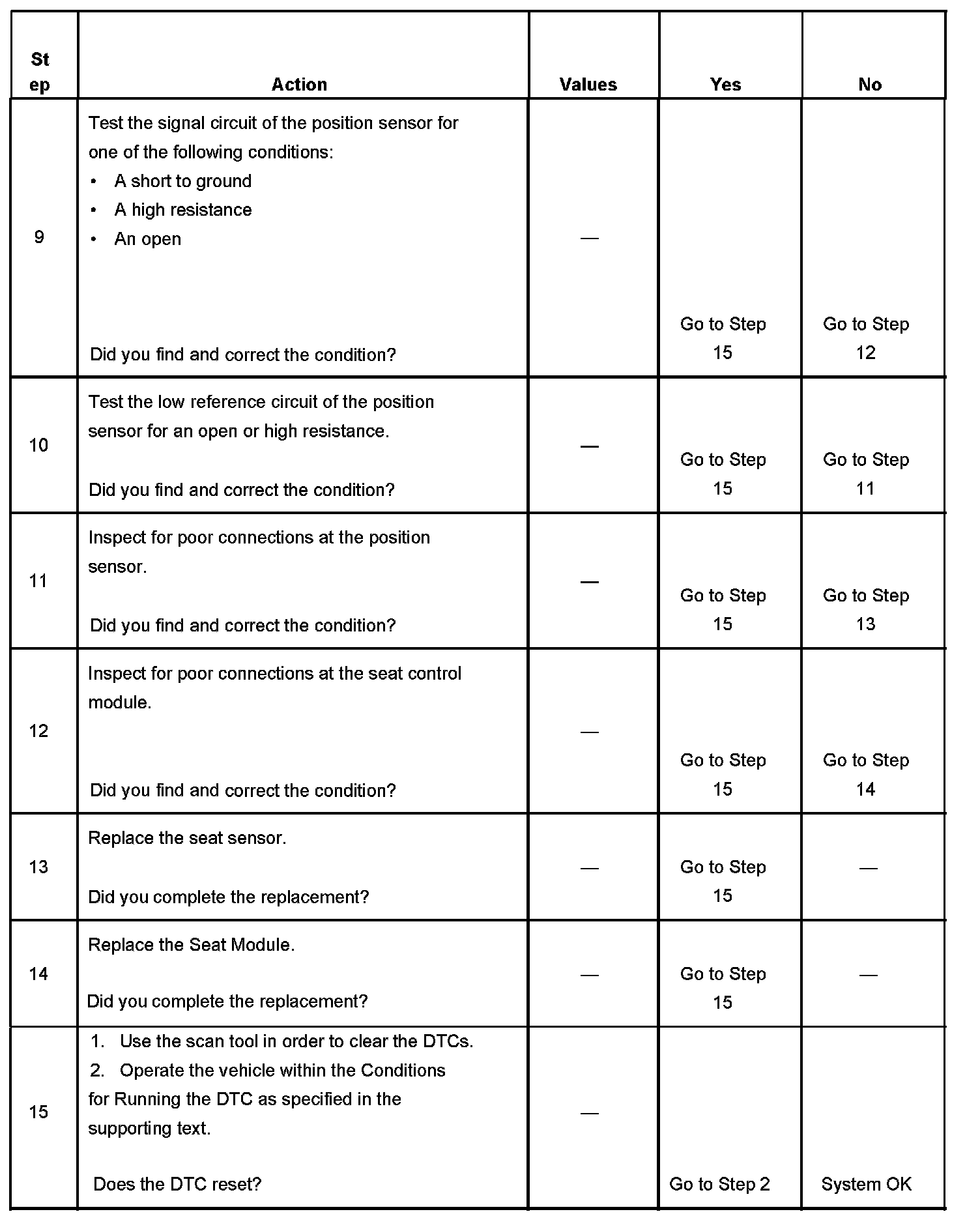 Battery voltage to the seat module must be within 7-16 volts.