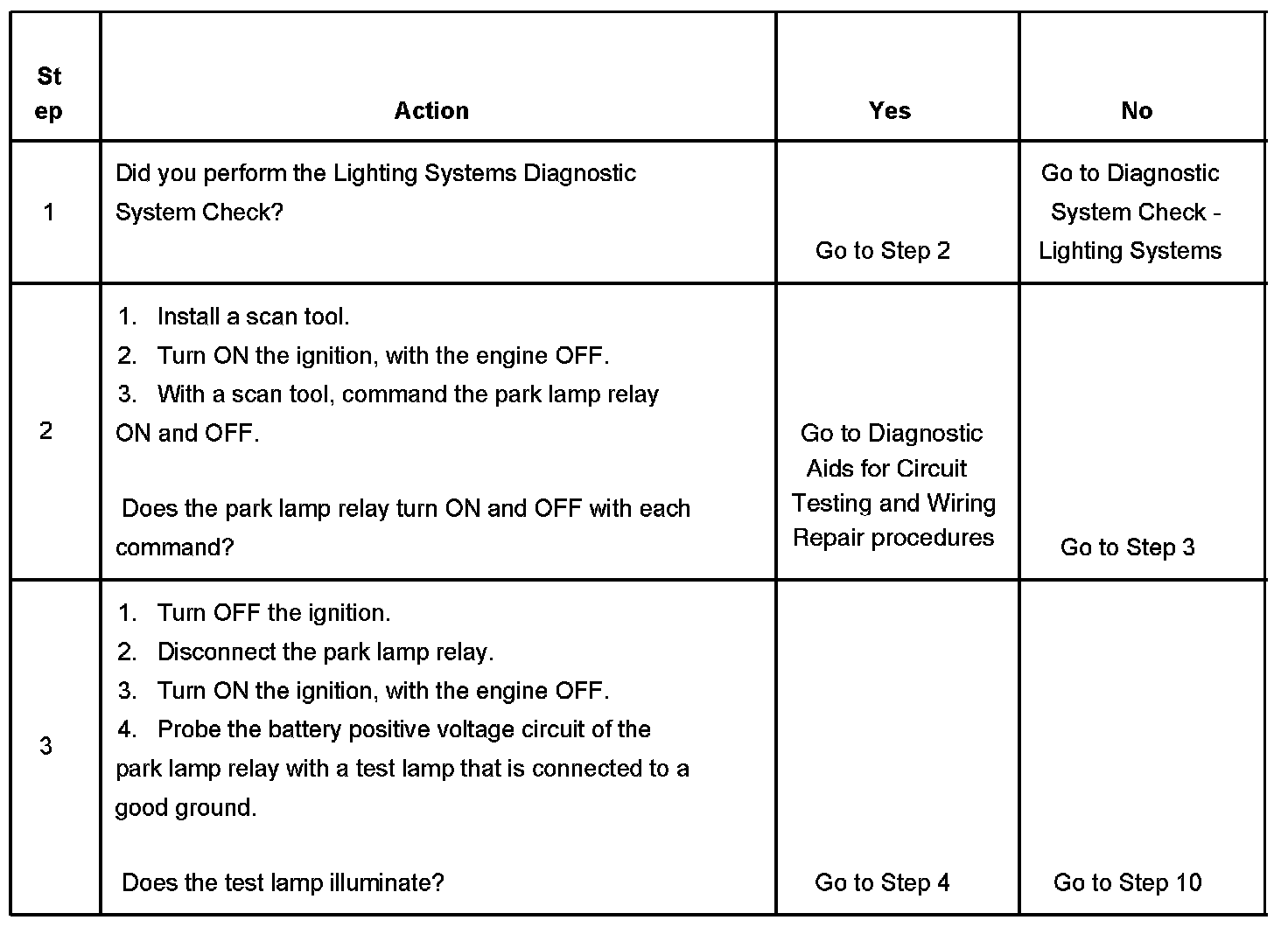 6. Tests if there is opposing voltage present or an open park lamp relay control circuit.