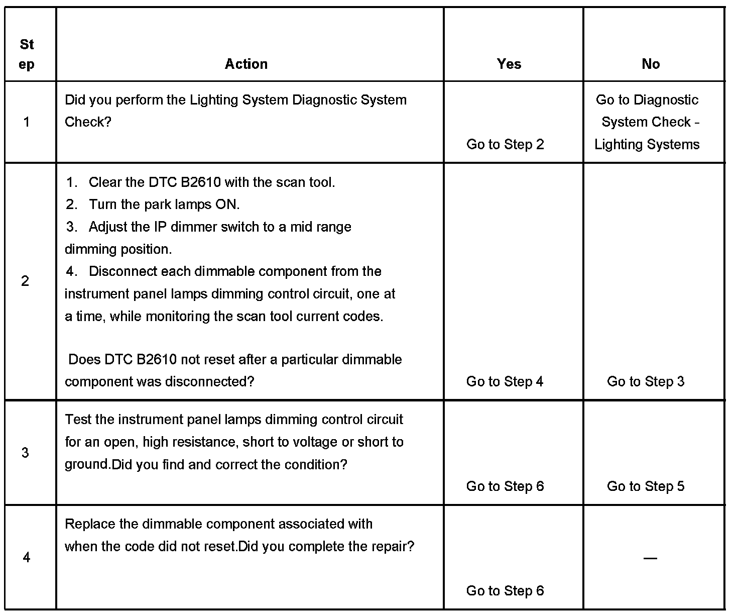 2. This step test determines by process of elimination which, if any, dimmable component is causing the DTC to set.