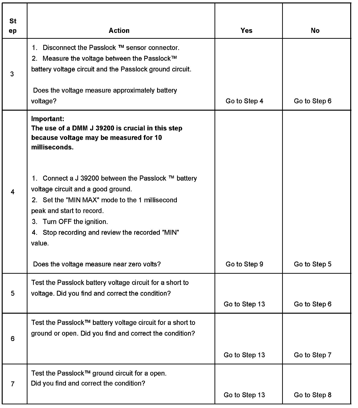 3. Tests for a short to ground in the Passlock(TM) sensor or the pigtail harness.
