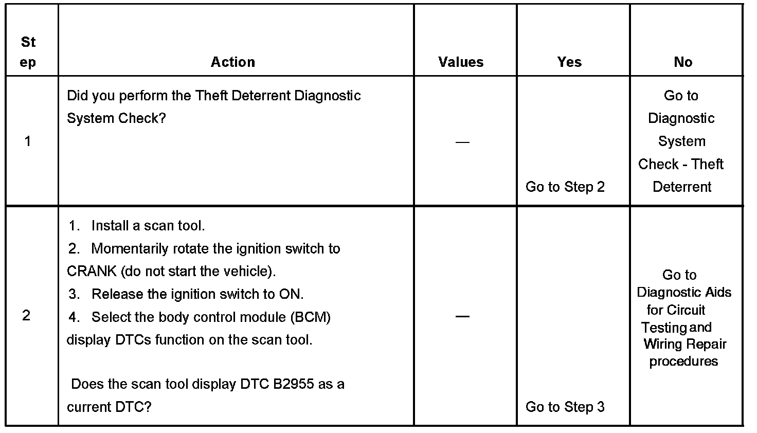 - You may be directed to this table from the VTD Diagnostic System Check without a DTC B2955 being set. If you were directed to this table, follow all of the steps in this diagnostic table.