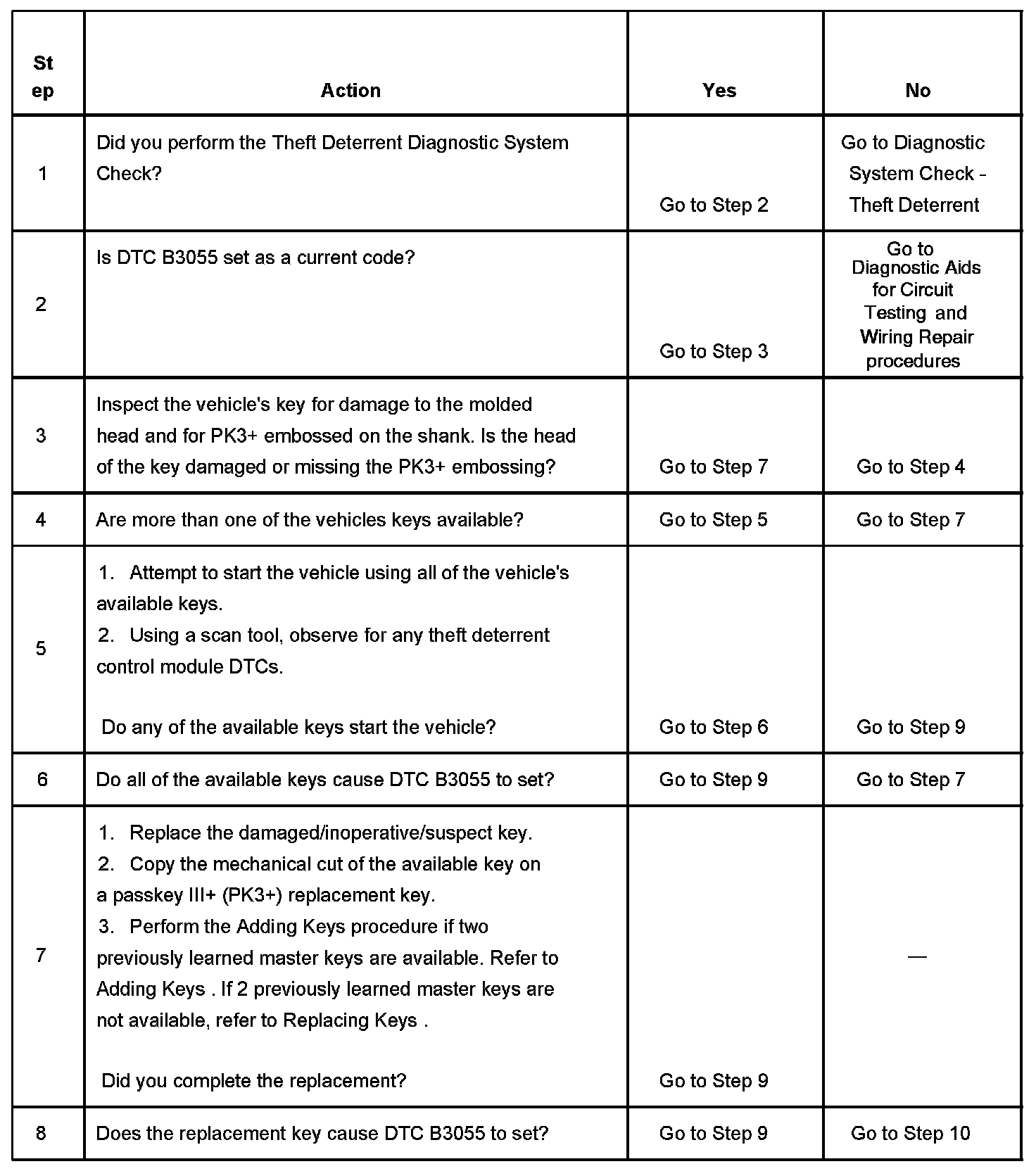 THEFT DETERRENT - IMMOBILIZER - SOME EXPORT VEHICLESDTC B3055