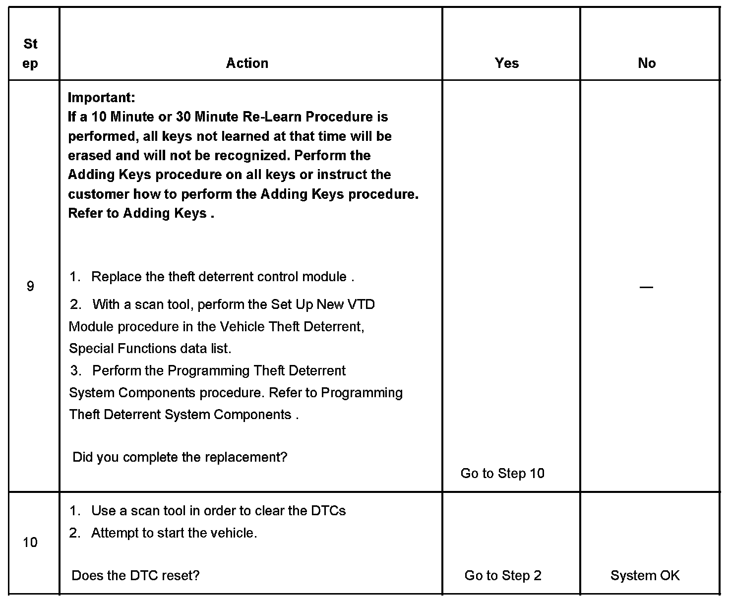 8. If only one key was available for the vehicle and the replacement key does not work, the theft deterrent control module must be malfunctioning.