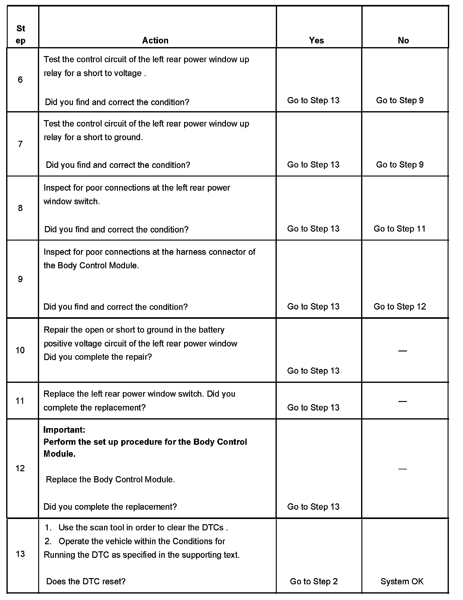 - When the BCM has grounded the left rear power window up relay control circuit and the control circuit is shorted to battery positive voltage.