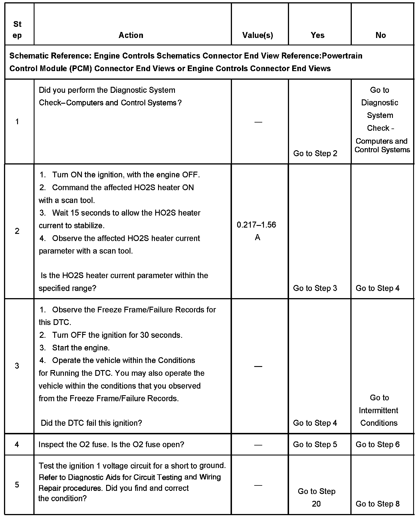 - The PCM detects that the affected HO2S heater current is less than 0.217 amps or more than 1.56 amps.