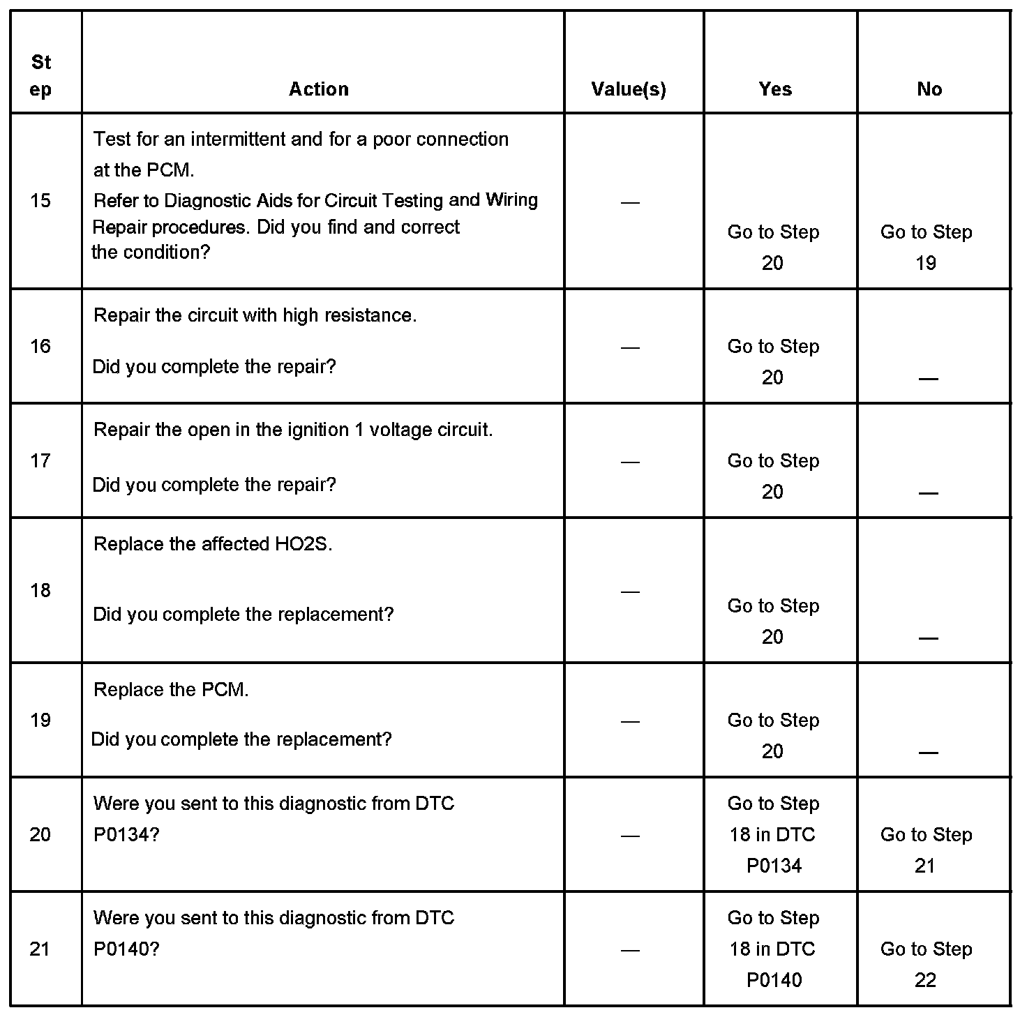 If the PCM detects that the HO2S heater current is above or below a specified range, DTCs P0135 or P0141 sets.