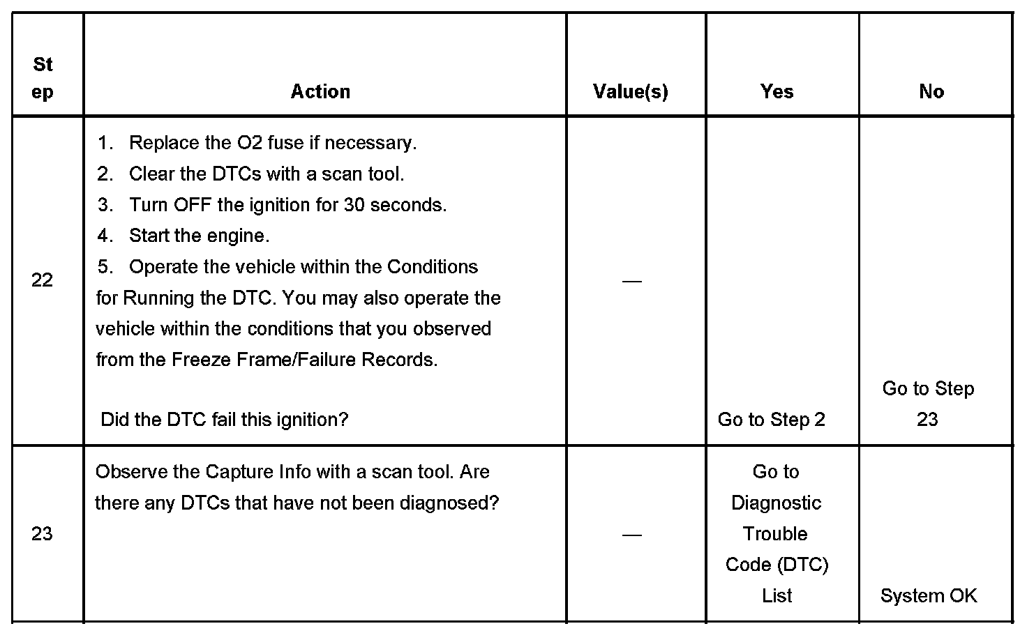 - A current DTC, Last Test Failed, clears when the diagnostic runs and passes.