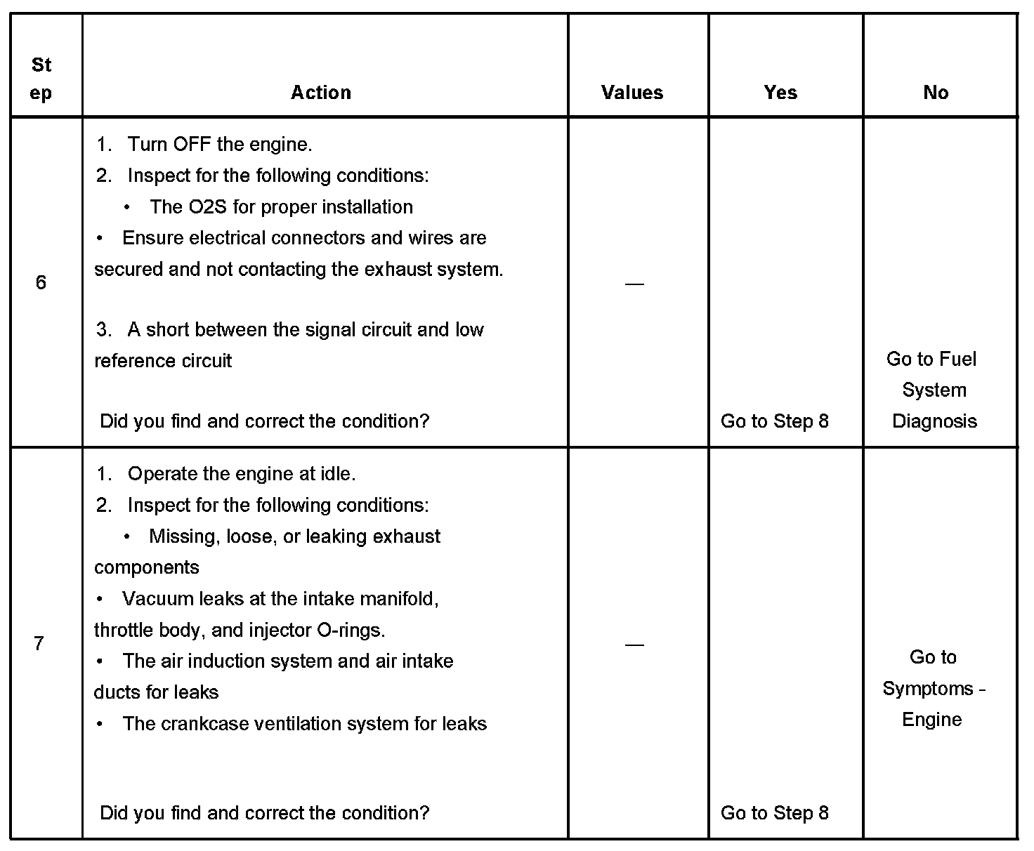The number below refers to the step number on the diagnostic table.