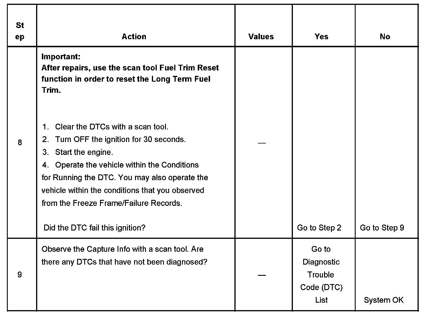 - A current DTC, Last Test Failed, clears when the diagnostic runs and passes.