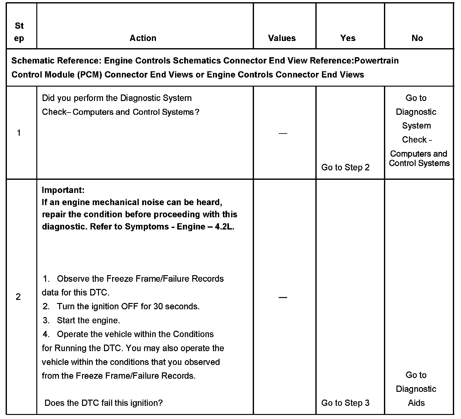 The numbers below refer to the step numbers on the diagnostic table.
