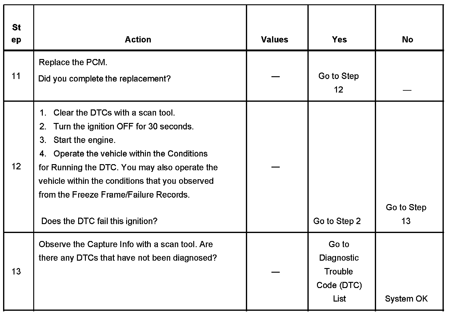 - A current DTC, Last Test Failed, clears when the diagnostic runs and passes.