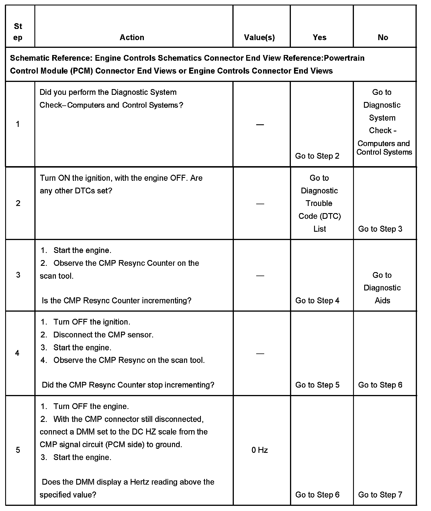 - If the PCM sees less than 15 resyncs in 256 seconds, the counter is reset to 0. When a faulty electrical connection is present, the CMP Reference Activity counter will stop incrementing and the CMP Resync Counter will increment.