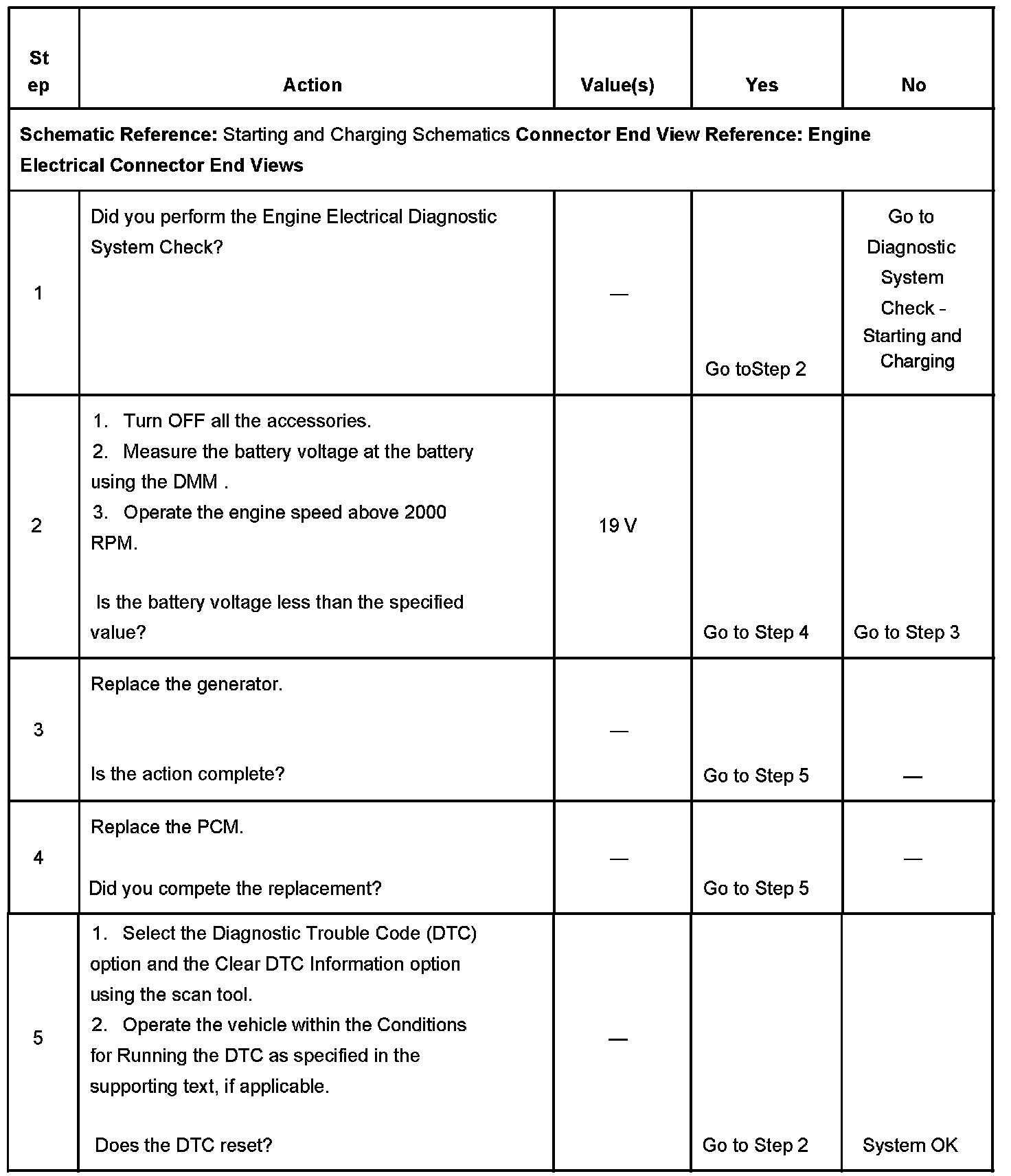 - The PCM senses the system voltage is above 19 volts.