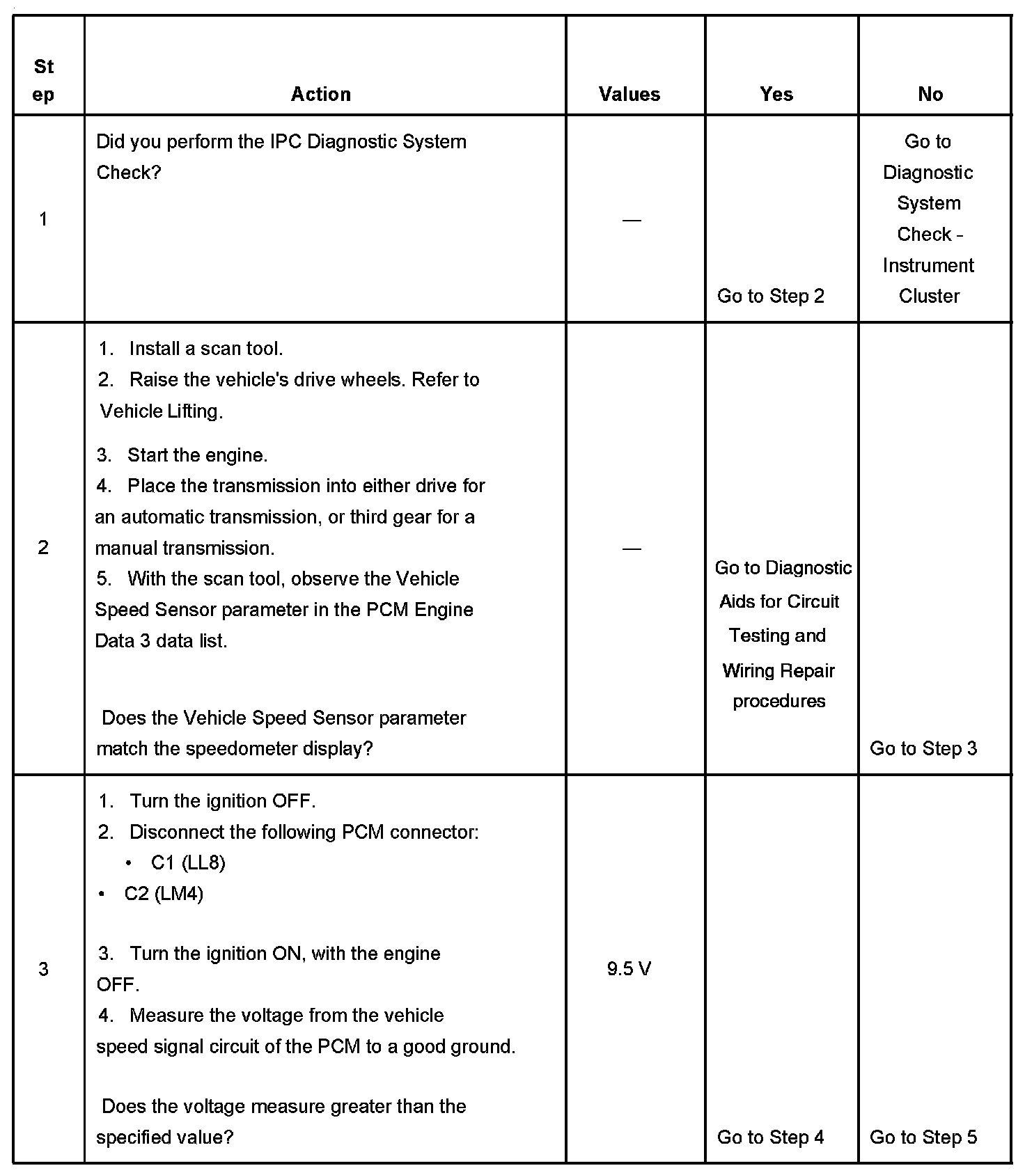 The powertrain control module (PCM) creates the vehicle speed output signal by pulsing the circuit to ground. The PCM monitors the voltage on the vehicle speed output circuit. If the PCM determines that the voltage is out of the normal operating range, a DTC sets.