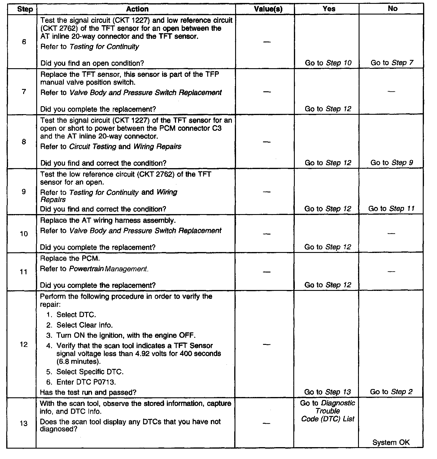 3. This step verifies a condition in the TFT sensor circuit.