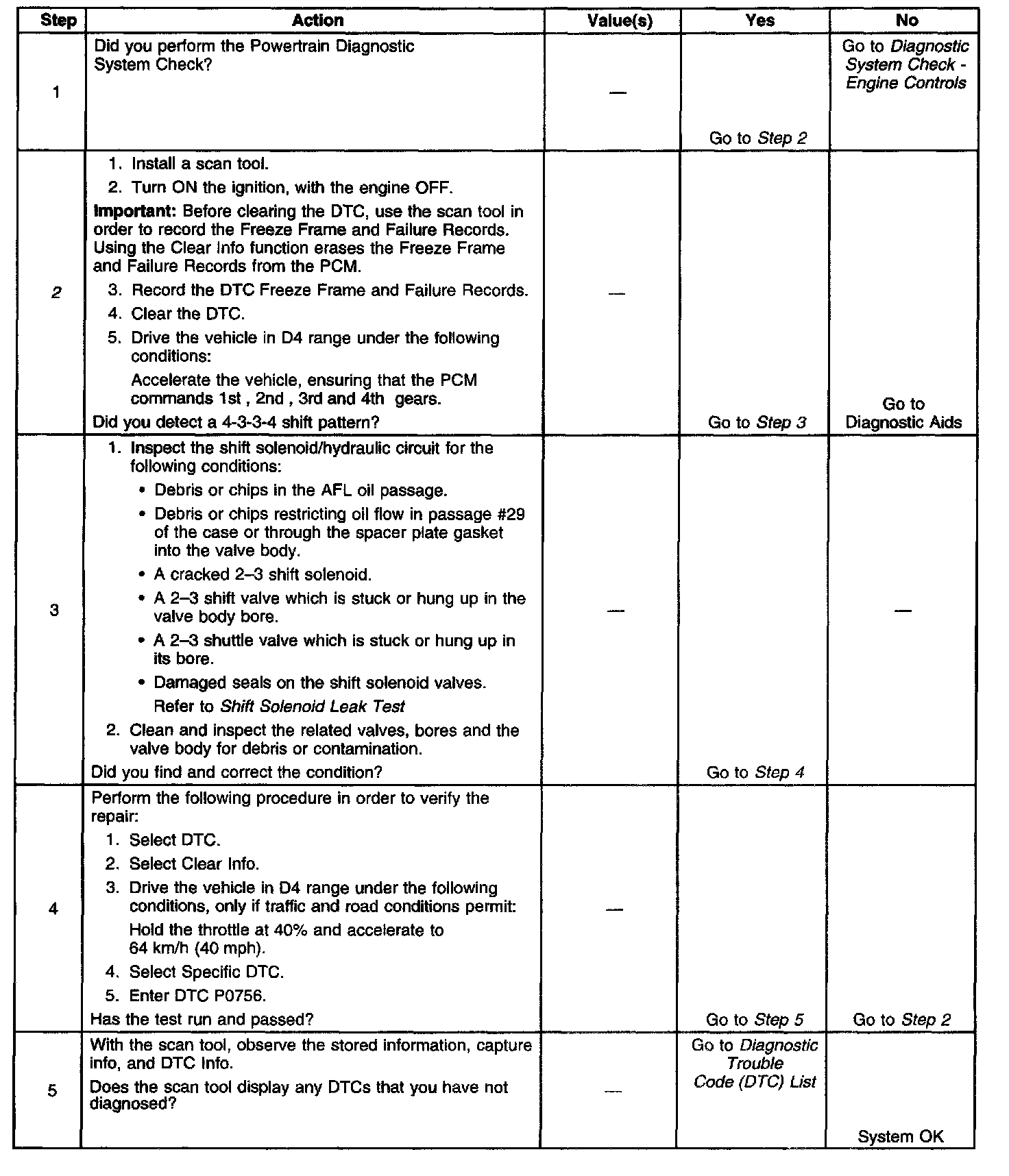 2. This step tests that the PCM commanded all shifts, that all Shift solenoid valves responded correctly, but that all the shifts did not occur.
