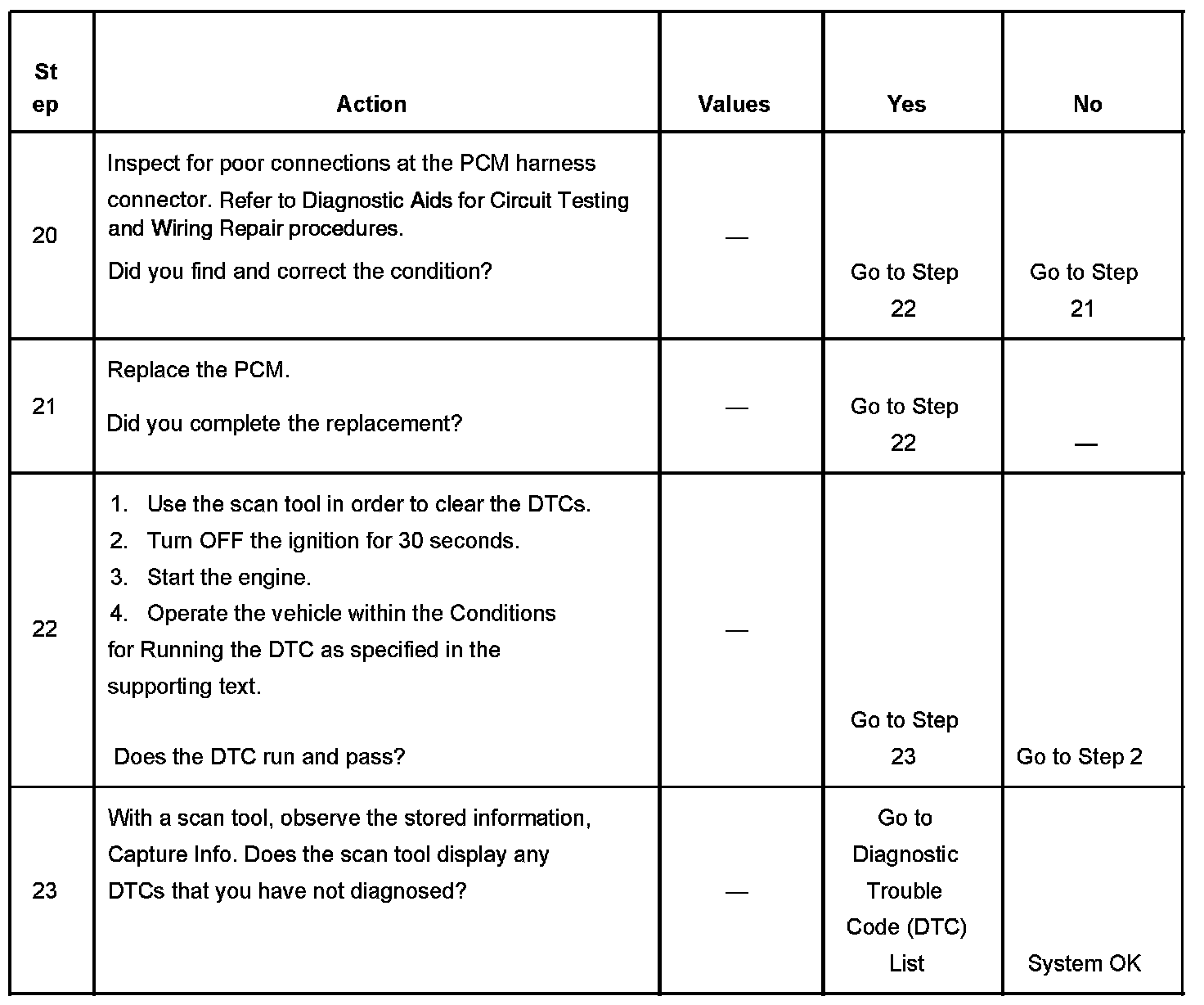 - A current DTC, Last Test Failed, clears when the diagnostic runs and passes.