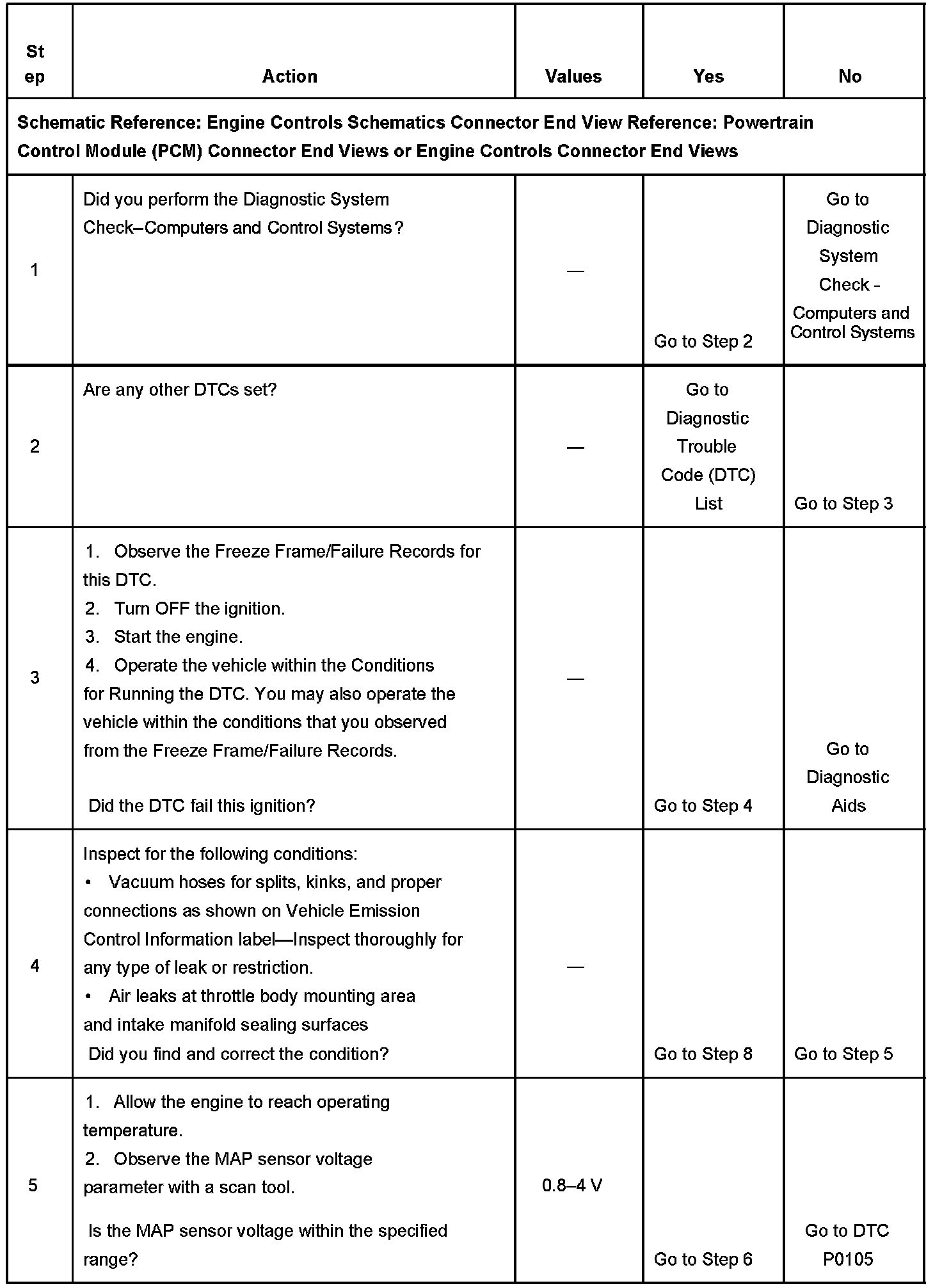 5. This step will determine if the manifold absolute pressure (MAP) sensor voltage is within the proper range at idle.
