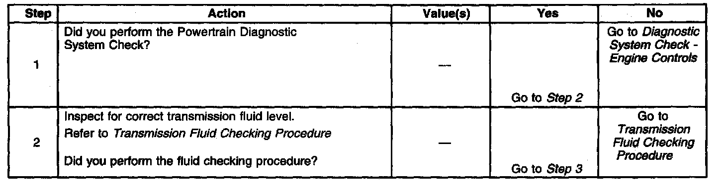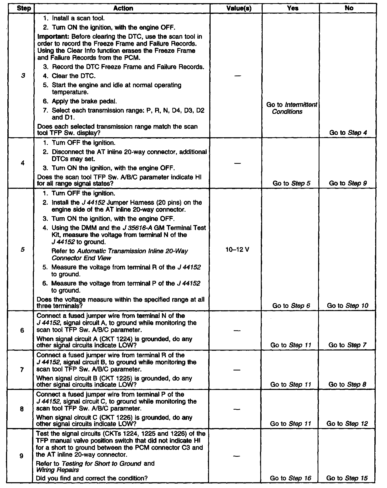 ^ Refer to the Transmission Fluid Pressure (TFP) Manual Valve Position Switch Logic for the normal range signals and the invalid combinations. On the table, LOW is 0 volts, HI is ignition voltage.