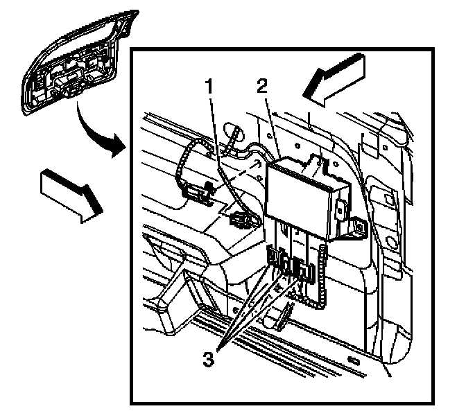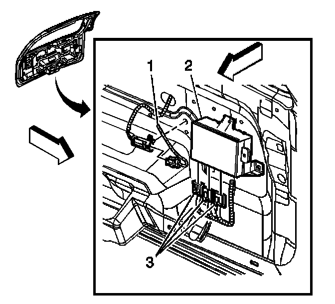 7. Disconnect the electrical connectors (3) from the liftgate module.