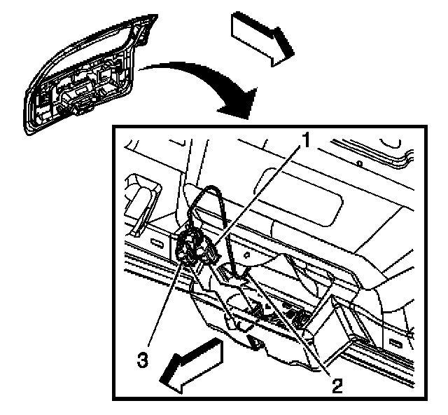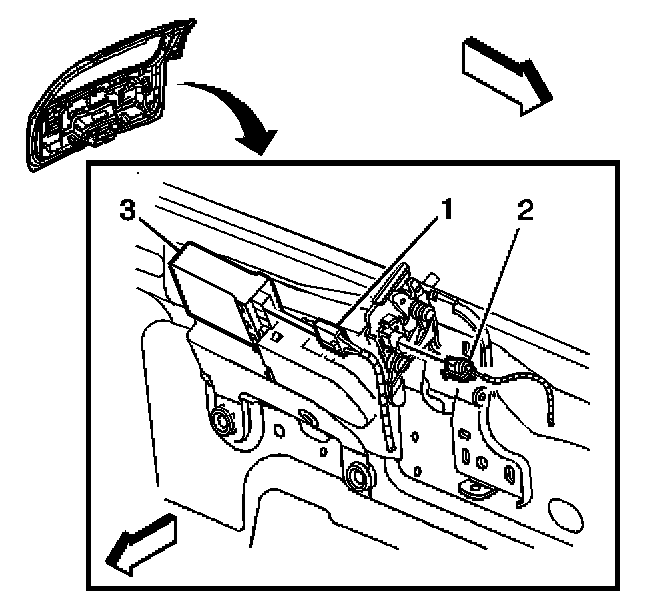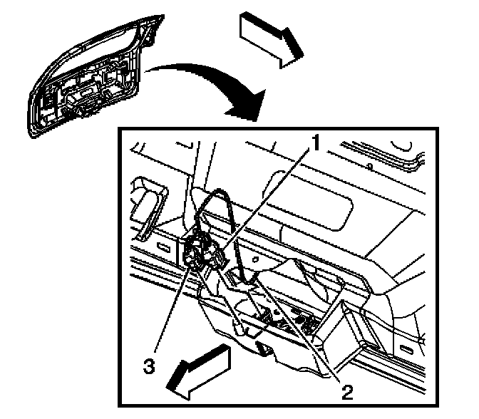 11. Disconnect the 2 liftgate power lock assembly connectors (1,3).