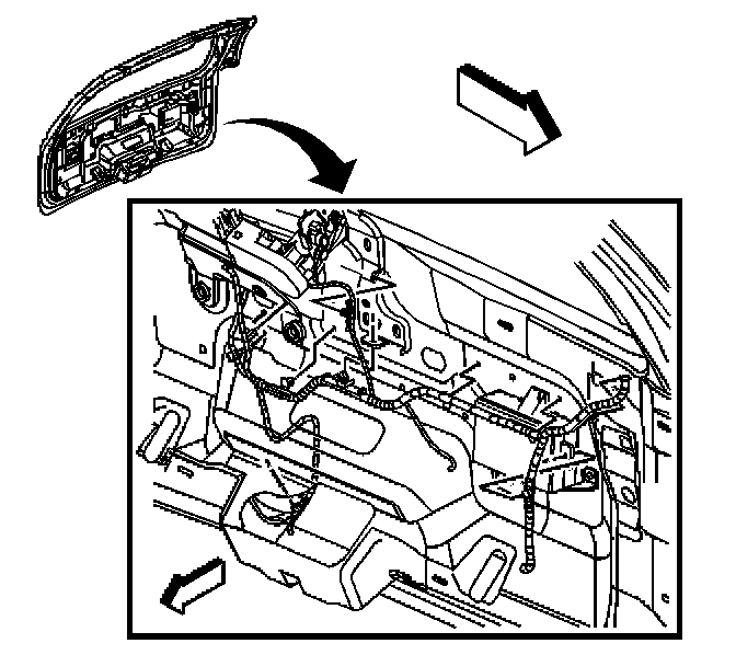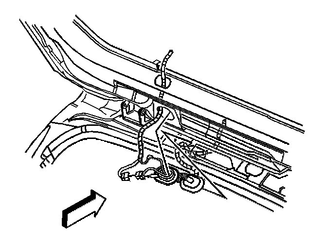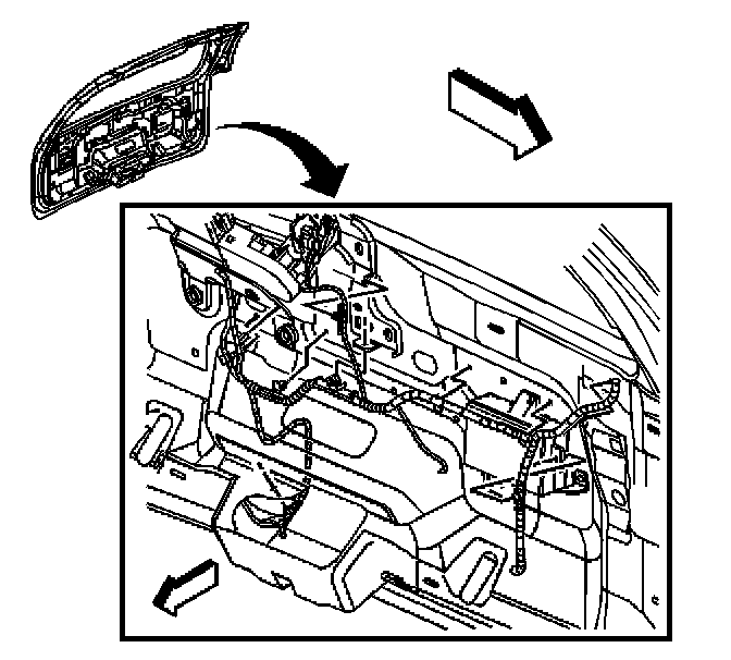 1. Install the wiring harness to the liftgate as previously routed. Ensure that the harness retainers are fully seated.