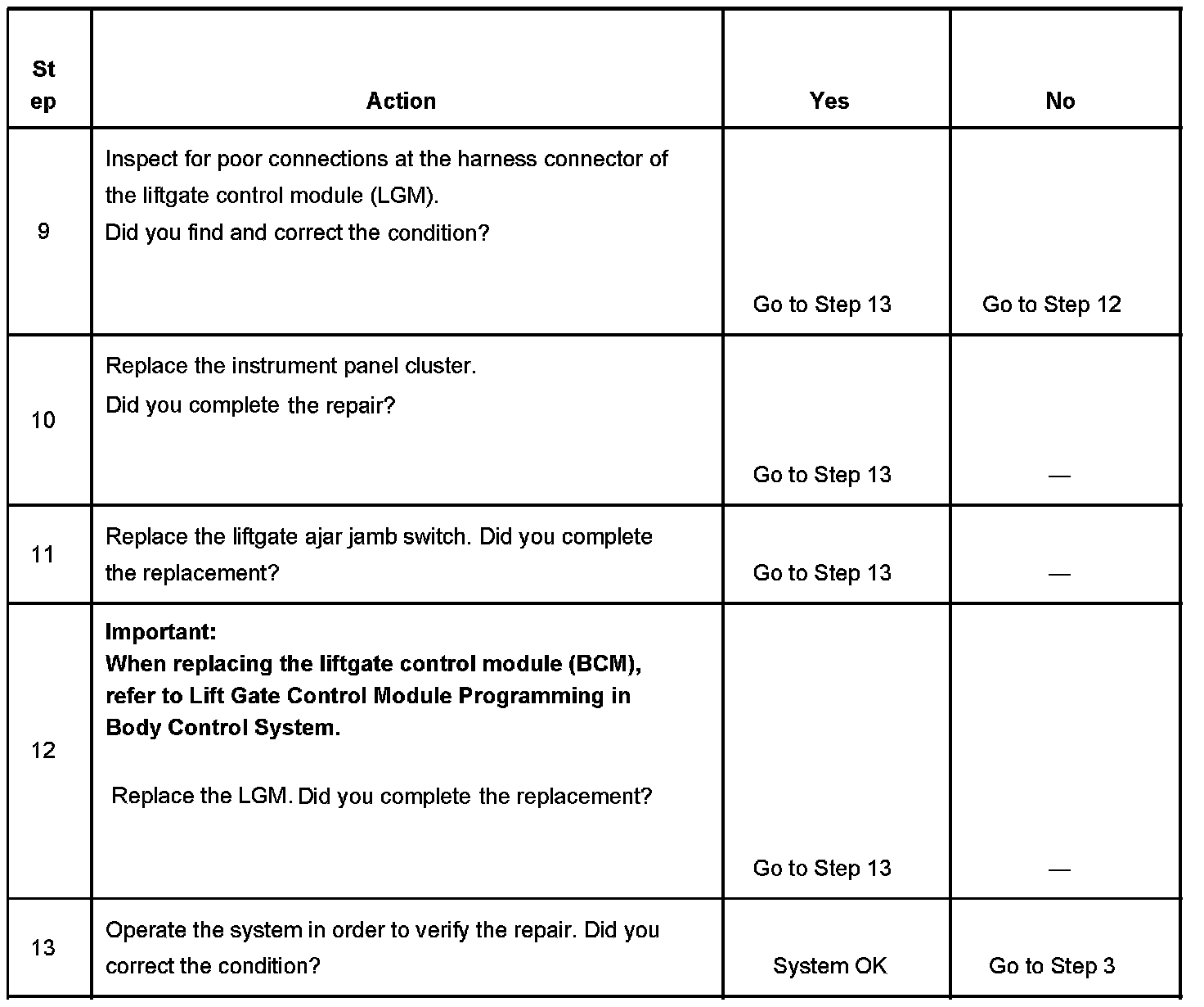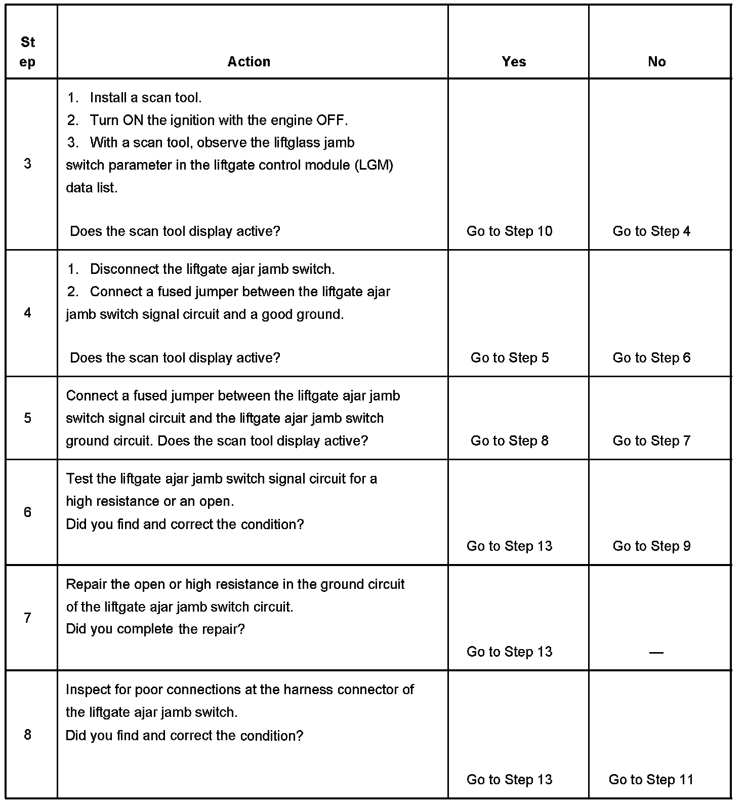 Rear Hatch/Gate Ajar Indicator Inoperative