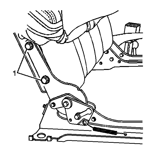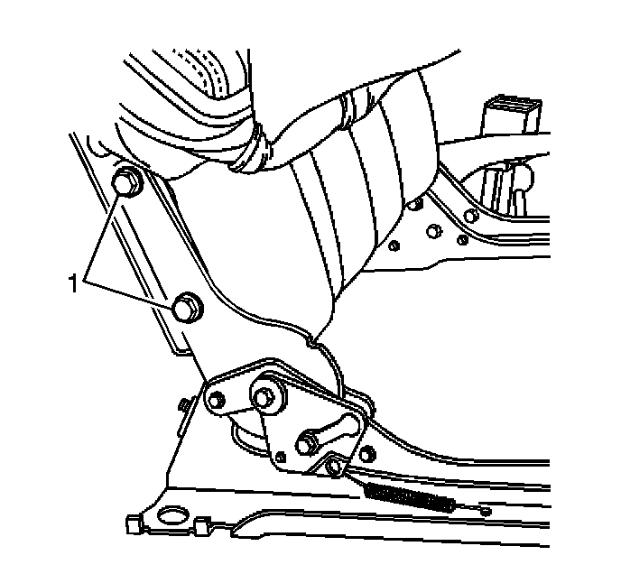 3. Remove the two bolts (1) securing the outer riser assembly to the seat back frame.