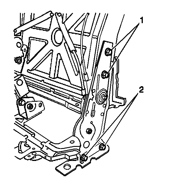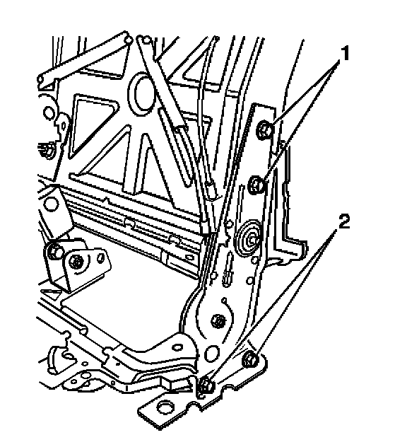 2. Remove the bolts (2) that retain the latch bracket to the seat hinge.