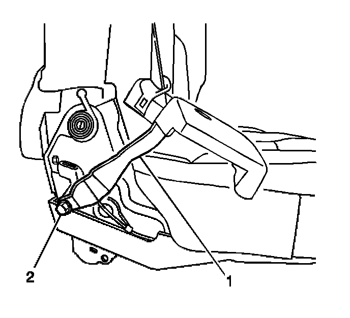 2. Remove the rear seat belt anchor nut (2).