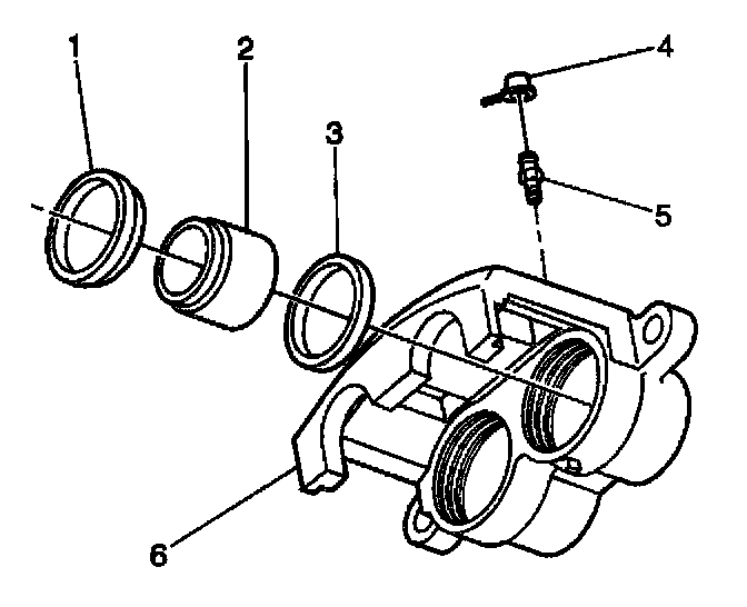 5. Remove the piston seals (3) from the caliper bores. Do not use a metal tool.
