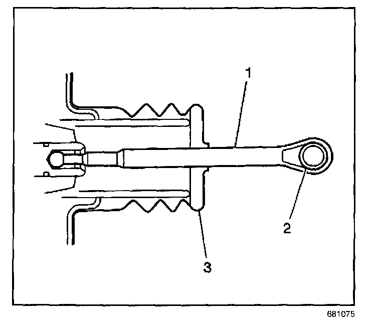3. Reposition the pedal pushrod boot (3) toward the front of the vehicle to expose as much of the pedal pushrod (1) as possible.