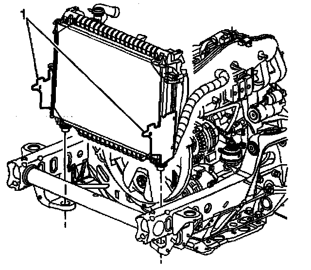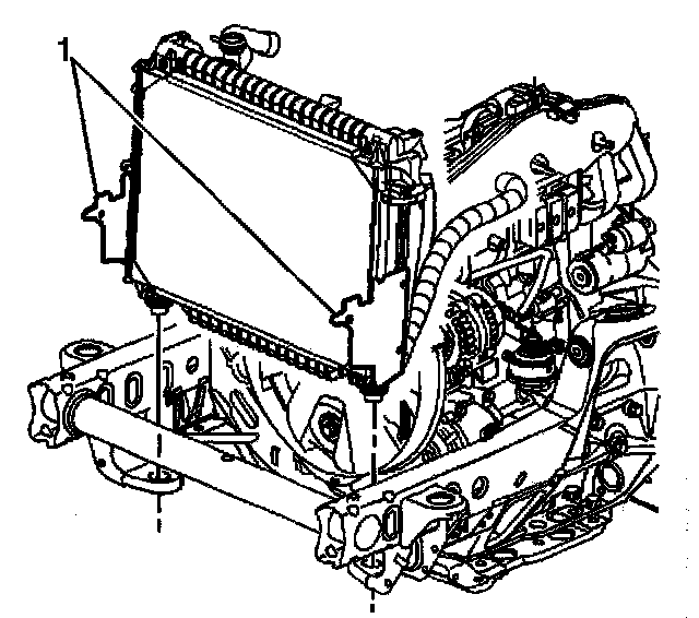 4. Clip the fan shroud to the radiator at the side panels (1).