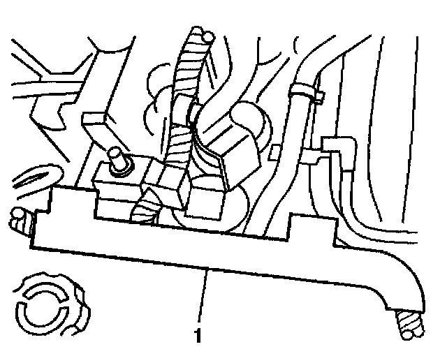 9. Disconnect the engine electrical harness housing from the camshaft cover (1) taking care not to damage the clips that hold the housing in place.
