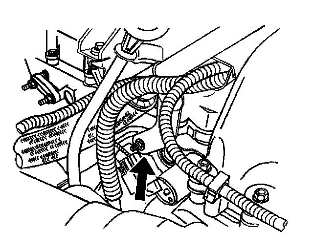 8. Install the A/C line bracket to the oil level indicator tube stud and secure the bracket with the nut.