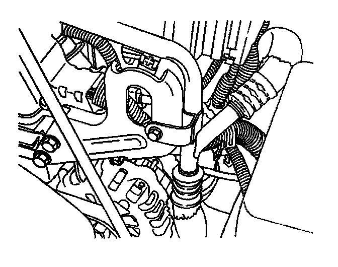 10. Install the A/C line bracket to the engine lift bracket and secure the A/C bracket with the bolt.