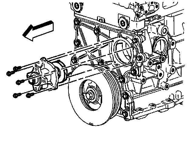 7. Loosen and remove the water pump bolts.