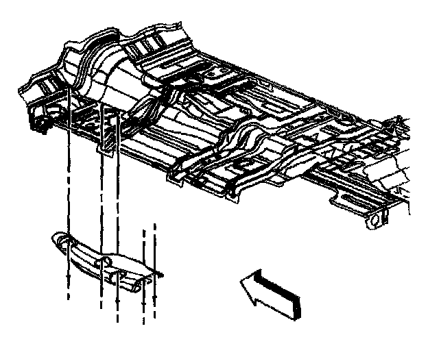 1. Place the catalytic converter heat shield onto the floor panel studs.