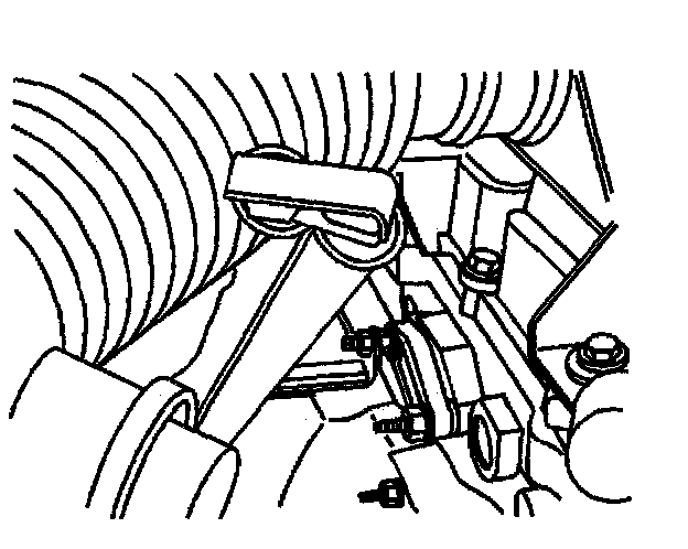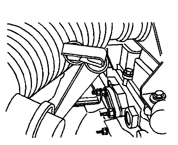 13. Move the transmission filler tube back onto the A.I.R. adapter block stud and secure the tube with a nut.