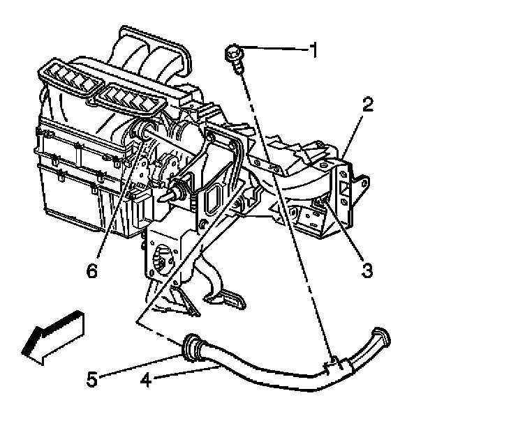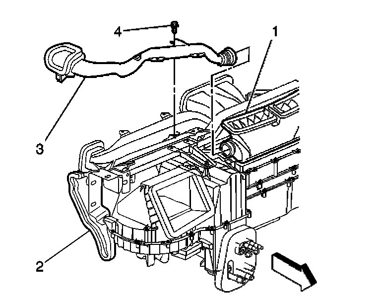 4. Install the retaining screw (1) to the driver side window defroster duct (4).