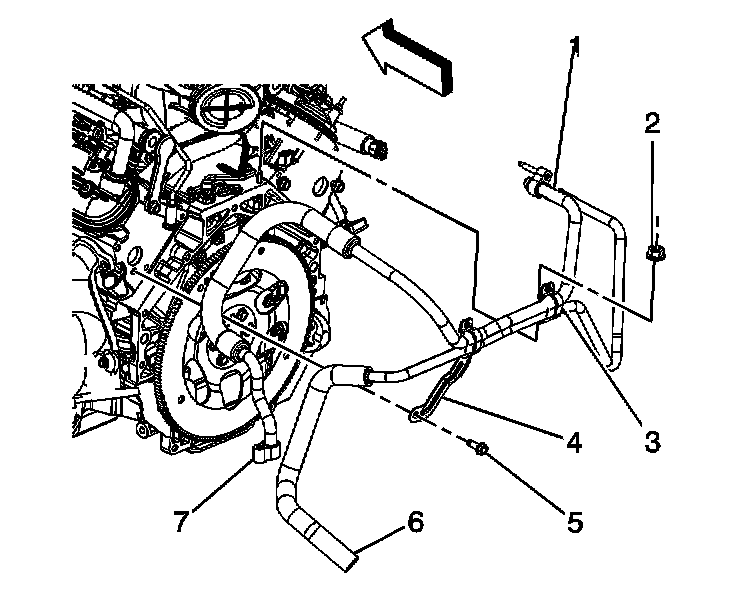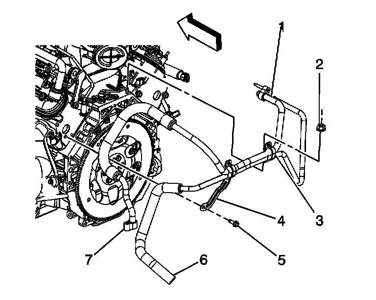 5. Remove the heater outlet hose (7) from the outlet hose fitting.